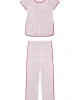 The Pima Classic Short-Long Set in Classic Red Garland, a subtly festive, abstract interpretation of garland in tones of red and pink,features a scoop neck, short-sleeve top and pants with a dolphin hem and elastic waistband. This soft, breathable pajama pants set has contrast piping throughout. Made from 100% Pima cotton.