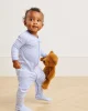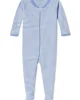 Our updated baby sleepers feature a ribbed, cotton-spandex collar and cuffs and an enhanced fit. The Baby Sleeper in Hydrangea, our best-selling purpley blue, features a dual zipper for easy diaper changes. Designed for sleep or play in silky soft, naturally hypoallergenic 100% Pima cotton, this fuss-free, footed style includes sole grips in sizes 12-18m & 18-24m. This garment is not flame-resistant. For the child’s safety, this garment should fit snugly.