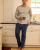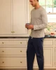 The Menโs Pima Sleep Pants in Navy are a straight leg, full-length pant featuring an elastic waistband, functional drawstring, faux fly, and on-seam pockets. Pair with a coordinating Pima tee for ultimate comfort. Made from 100% Pima cotton.