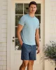The Menโs Pima Sleep Shorts in Navy feature a functional drawstring, on-seam pockets, a faux fly, and an elastic waistband. This pajama short is designed to hit above the knee. Made from 100% Pima cotton.