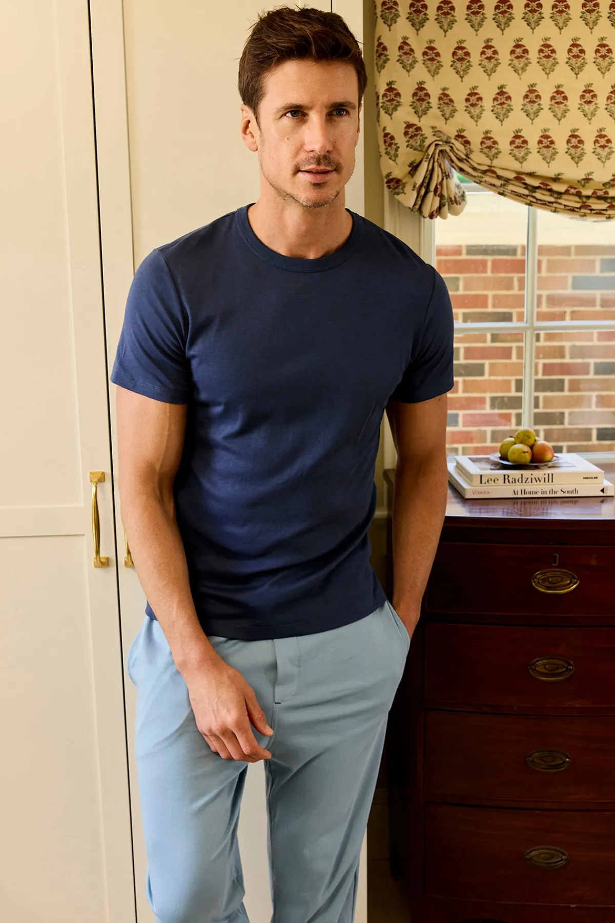 The Menโs Pima Crewneck Tee in Navy features short sleeves and a ribbed crewneck in ultra-soft, never sheer Peruvian cotton. This tee has all the softness of his favorite vintage number with a classic look and durable construction to last for years to come. Made from 100% Pima cotton.