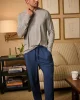 The Mens Bamboo Lounge Pants in Navy feature an elastic waistband with a drawstring tie and pockets. Upgrade your lounge game in this stretchy knit fabric similar to a jersey. Made from 95% bamboo and 5% spandex.