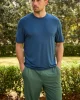 The Mens Short Sleeve Bamboo Tee in Sea Depth, a deep, muted blue, is ideal for a nightcap before bed and weekends on the boat. Made from 95% bamboo and 5% spandex.