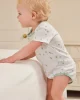 The Pima Bodysuit Bundle in Parisian Green includes three snug bodysuits with lap shoulders and snap closures. This set features one stripe and one star-print bodysuit in our signature French green, as well as one plain white bodysuit. Made from 100% Pima cotton.