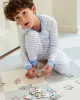Our enhanced kids styles feature a ribbed, cotton-spandex collar and cuffs for a comfortable, easy-on fit. The Kids Long-Long Set in Baltic Blue, cornflower blue stripes set on white, features a long-sleeve top and pants with an elastic waistband. Made from 100% Pima cotton. This garment is not flame-resistant. For the child’s safety, this garment should fit snugly.