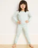 Our enhanced kids styles feature a ribbed, cotton-spandex collar and cuffs for a comfortable, easy-on fit. The Kids Long-Long Set in Parisian Green features a long-sleeve top and pants with an elastic waistband. Made from 100% Pima cotton. This garment is not flame resistant. For the child’s safety, this garment should fit snugly.