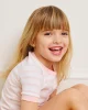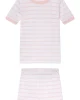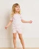 Our enhanced kids styles feature a ribbed, cotton-spandex collar and cuffs for a comfortable, easy-on fit. The Kids Shorts Set in English Rose Triple Stripe, a warm pink stripe set on white, features a short-sleeve top and shorts with an elastic waistband. Made from 100% Pima cotton. This garment is not flame resistant. For the child’s safety, this garment should fit snugly.