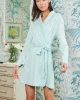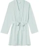 The Pima Short Robe in Parisian Green features long sleeves, a sewn-in belt, and side pockets. Made from 100% Pima cotton.