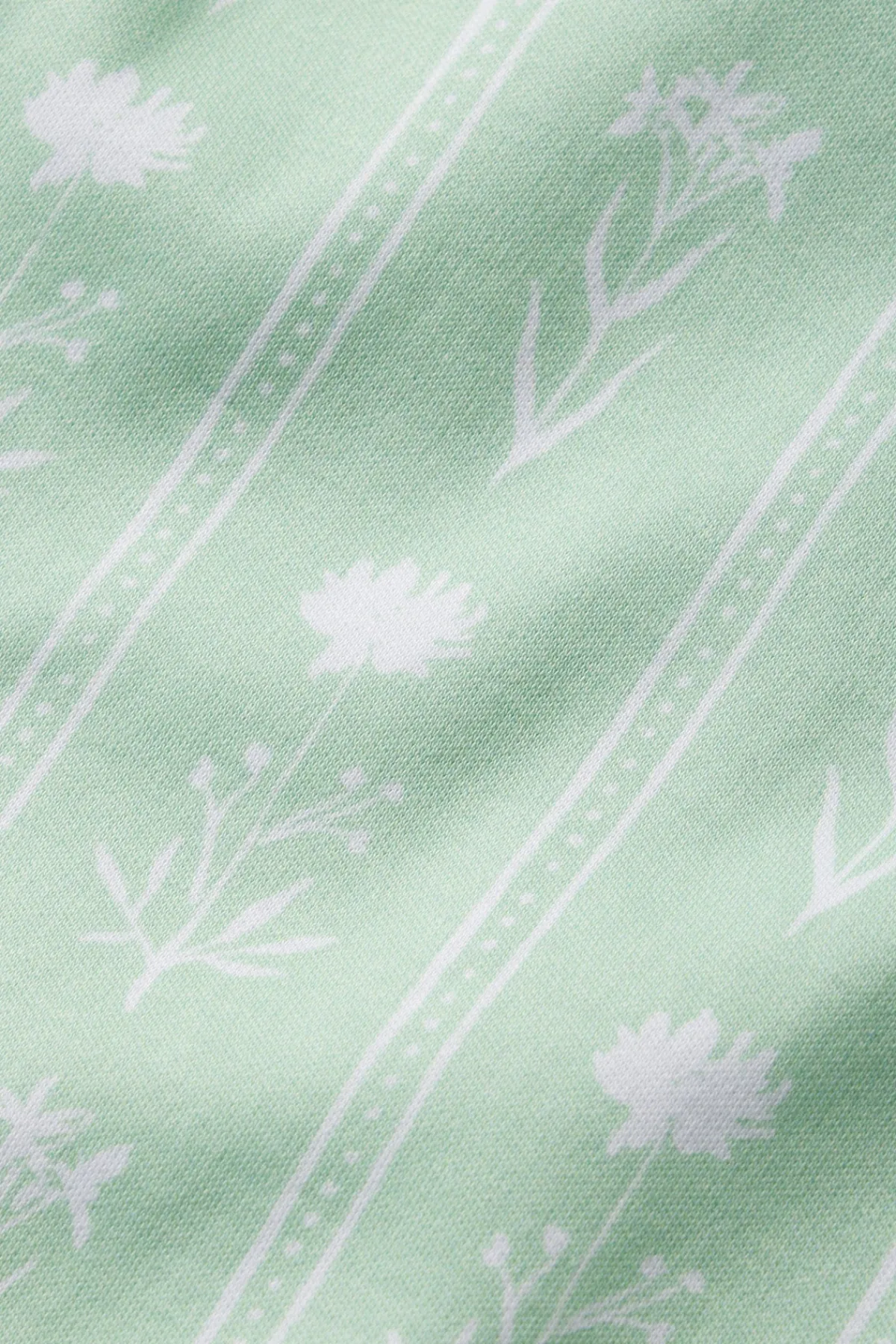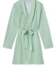 The Pima Short Robe in Parisian Green Watercolor Stems, a lush and painterly vertical floral set on our signature French green, features long sleeves, a sewn-in belt, and side pockets. Made from 100% Pima cotton.