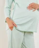 Our new, redesigned maternity styles make the waiting game more comfortable. The Maternity Pima Classic Long-Long Set in Parisian Green features a scoop neck top with a hidden snap placket for nursing or pumping, long raglan sleeves, and room for a bump. The pants have a supportive elastic waistband, drawstring, and on-seam pockets for the essentials (hi, pacifiers). This soft, breathable maternity pajama set has curved hems and contrast piping throughout. Made from 100% Pima cotton.