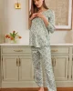 Our new, redesigned maternity styles make the waiting game more comfortable. The Maternity Pima Classic Long-Long Set in Topiary Garden Floral, a lively floral in shades of green, features a scoop neck top with a hidden snap placket for nursing or pumping, long raglan sleeves, and room for a bump. The pants have a supportive elastic waistband, drawstring, and on-seam pockets for the essentials (hi, pacifiers). This soft, breathable maternity pajama set has curved hems and contrast piping throughout. Made from 100% Pima cotton.