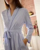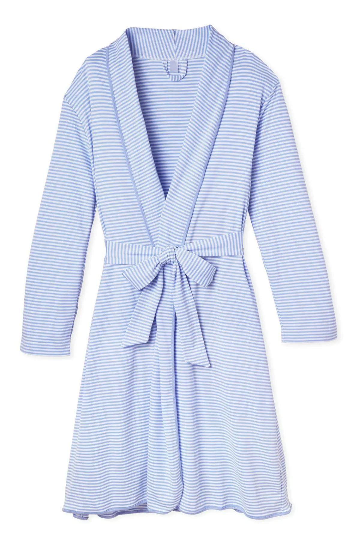 The Pima Robe in Hydrangea, our best-selling purpley-blue, features long sleeves, a sewn-in belt, and side pockets. Made from 100% Pima cotton.