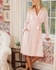 The Pima Robe in English Rose Stripe, a subtly warm pink stripe set on white, features long sleeves, a sewn-in belt, and side pockets. Made from 100% Pima cotton.