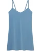 The DreamModal™ Cami Nightgown in Serene Blue is a camisole-style nightgown with adjustable straps and a picot trim at the neck and hem in soft ivory at the neckline. Designed to hit above-the-knee. Made from DreamModal™ (95% modal, 5% spandex).