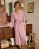 Fits true to size. Clothing should have a relaxed, comfortable fit when new. We typically recommend sizing up if you feel you are between sizes. This robe has a 44″ body length, taken from the high point of the shoulder. The model is 5’7″ and wears a XS.