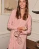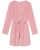 The DreamModal™ Short Robe in Ski Patrol Vertical Micro Stripe, a warm red, fine vertical stripe, features a flattering wrap silhouette with a sewn-in belt, side pockets, and an above-the-knee hem. Ivory picot trim adds a feminine touch to this buttery soft style. Made from DreamModal (95% modal, 5% spandex).