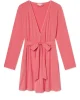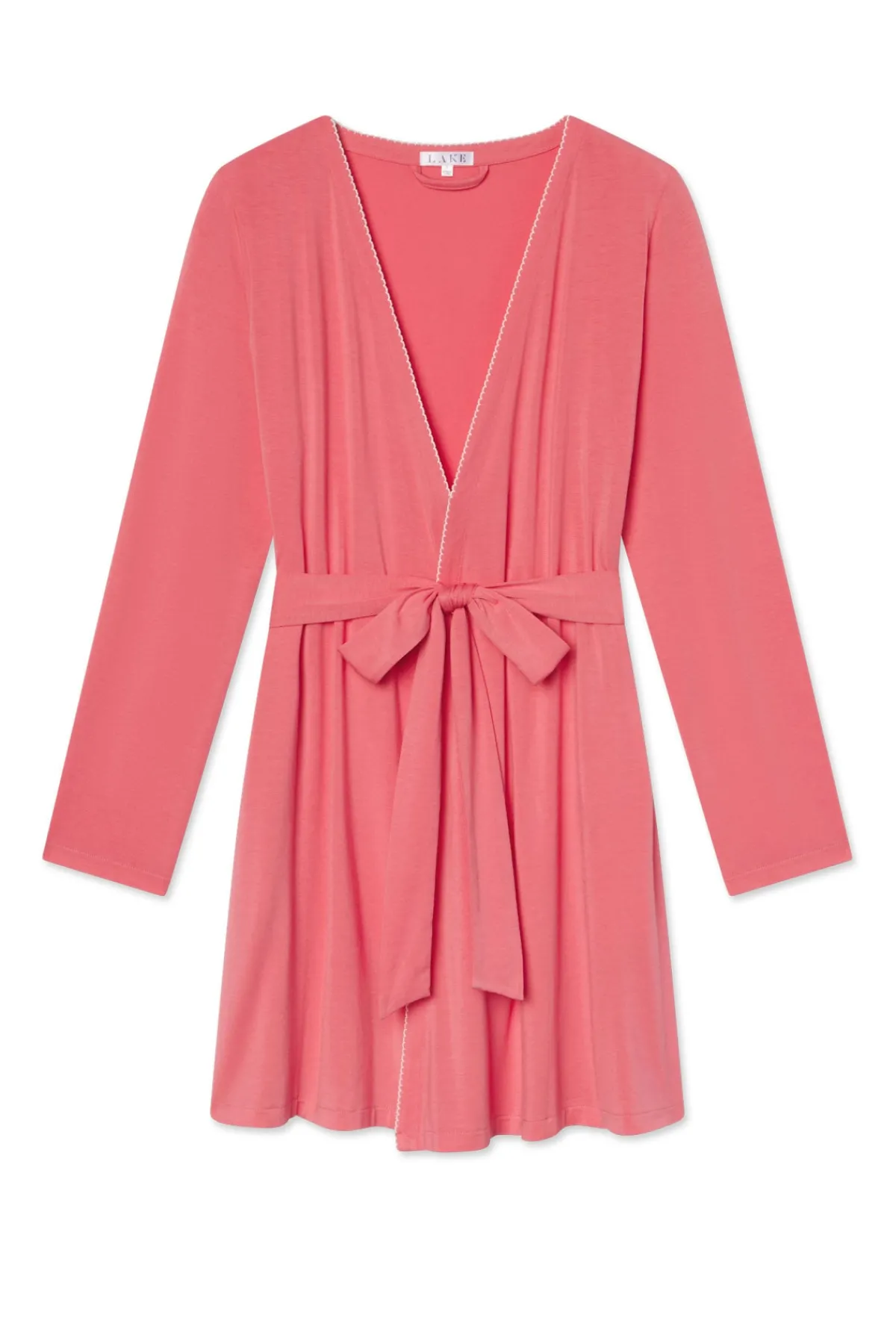 The DreamModal™ Short Robe in Winterberry, a warm pink, features a flattering wrap silhouette with a sewn-in belt, side pockets, and an above-the-knee hem. Ivory picot trim adds a feminine touch to this buttery soft style. Made from DreamModal (95% modal, 5% spandex).