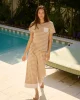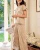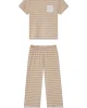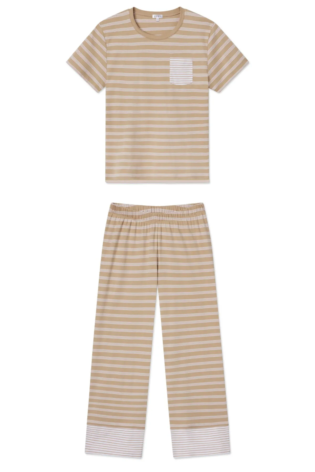 The Pima Crew Wide Leg Pajama Set in Sandstone MixedStripe, features a fitted short-sleeve crewneck top with cropped, wide-leg pants with an elastic waistband. A contrast chest pocket and pant cuff add an eye-catching twist. Made from 100% Pima cotton.