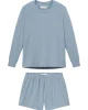 The Relax Shorts Set in Dusty Blue features a drapey, raglan-style sweatshirt and pull-on shorts with a roomy leg opening and faux fly front. This easygoing lounge set is our favorite to put on at the end of the day. Made of 95% modal, 5% spandex.