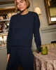 The Vesper Set in Dark Navy features a slouchy, slightly cropped crewneck sweater in a relaxed fit. The jogger-style pants feature a 28” inseam, ribbed waist and cuffs, and a functional drawstring. Wear this cozy set together or mix and match with your favorite fall pieces. Made from 50% polyester, 36% acrylic, 14% nylon.