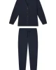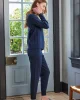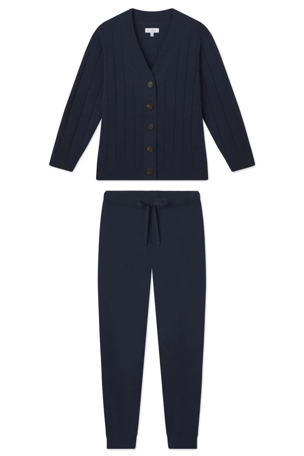 Cozy days at home just got even comfier in this plush, mid-weight lounge set. The Vesper Jogger Set in Deep Navy features a V-neck cardigan with faux horn buttons and a softly ribbed texture in a relaxed, true-to-size fit. The jogger-style pants have a 28” inseam in a smooth, solid weave with a ribbed waist, ribbed cuffs, and a functional drawstring. Designed to wear as a set, or mix it up with your favorite fall separates. Made from 50% polyester, 36% acrylic, 14% nylon.