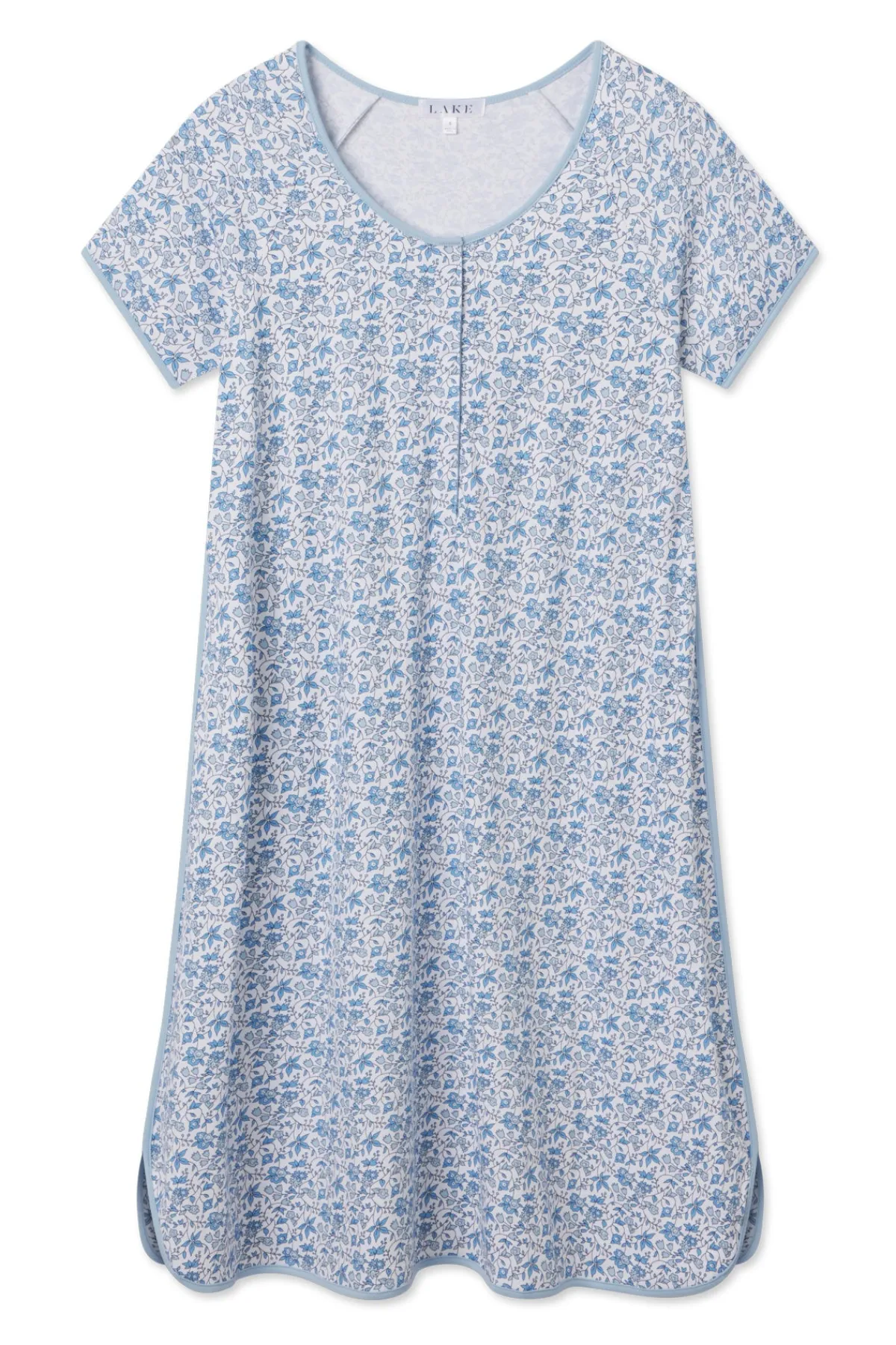 Our new, redesigned maternity styles make the waiting game more comfortable. The Maternity Pima Classic Nightgown in Delft Blue Garden Floral, a lively floral in shades of blue, features a scoop neck top with a hidden snap placket for nursing or pumping, short raglan sleeves, and room for a bump. This soft, breathable maternity nightgown has a curved hem and contrast piping throughout. Made from 100% Pima cotton.