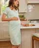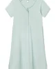 Our new, redesigned maternity styles make the waiting game more comfortable. The Maternity Pima Classic Nightgown in Parisian Green features a scoop neck top with a hidden snap placket for nursing or pumping, short raglan sleeves, and room for a bump. This soft, breathable maternity nightgown has a curved hem and contrast piping throughout. Made from 100% Pima cotton.