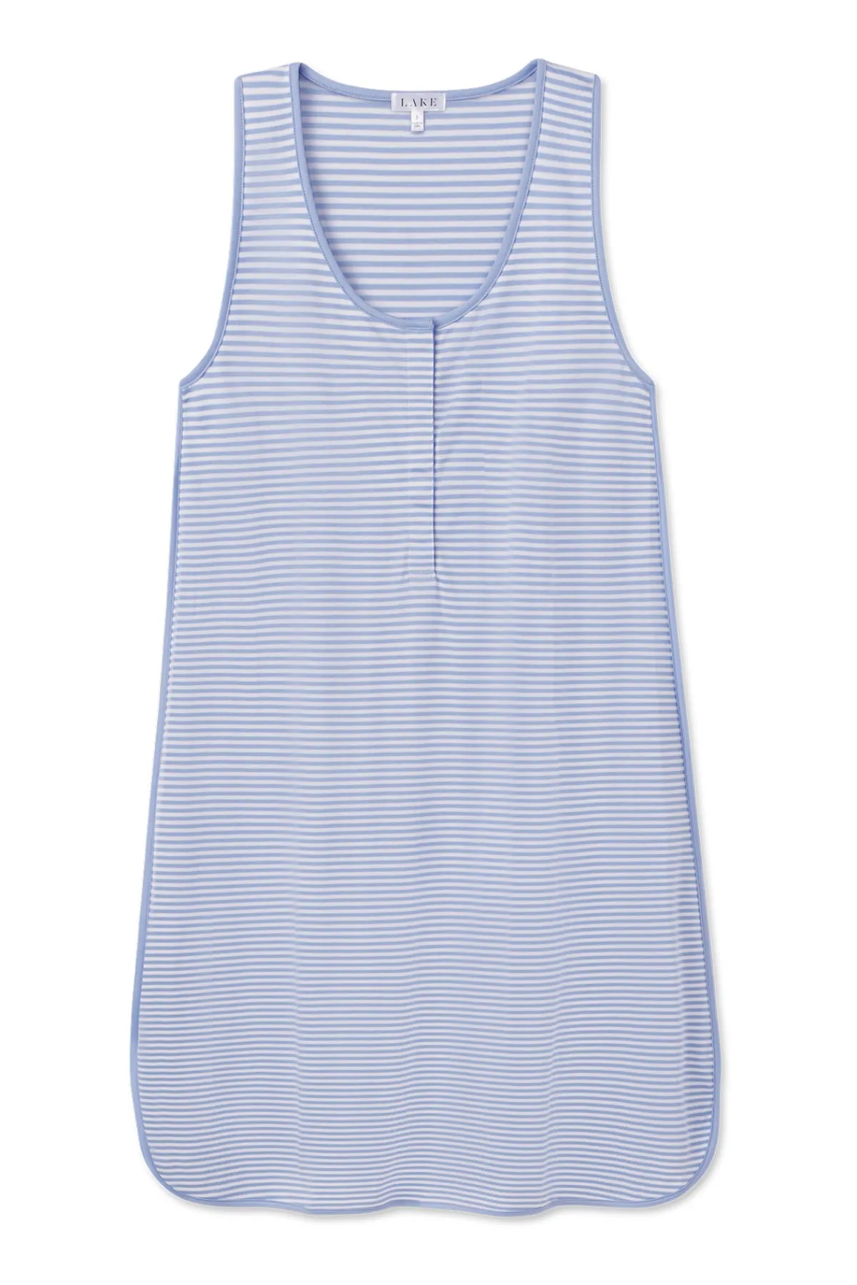 Our new, redesigned maternity styles make the waiting game more comfortable. The Pima Maternity Tank Gown in Hydrangea features a sleeveless scoop neck top with a hidden snap placket for nursing or pumping and room for a bump. This soft, breathable maternity nightgown has a curved hem and contrast piping throughout. Made from 100% Pima cotton.