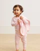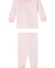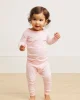Our enhanced baby styles feature a ribbed, cotton-spandex collar and cuffs for a comfortable, easy-on fit. The Baby Long-Long Set in English Rose Stripe, a subtly warm pink stripe set on white, features a long-sleeve top with two functional snaps and pants with an elastic waist. Made from 100% Pima Cotton. This garment is not flame resistant. For the child’s safety, this garment should fit snugly.