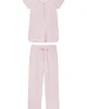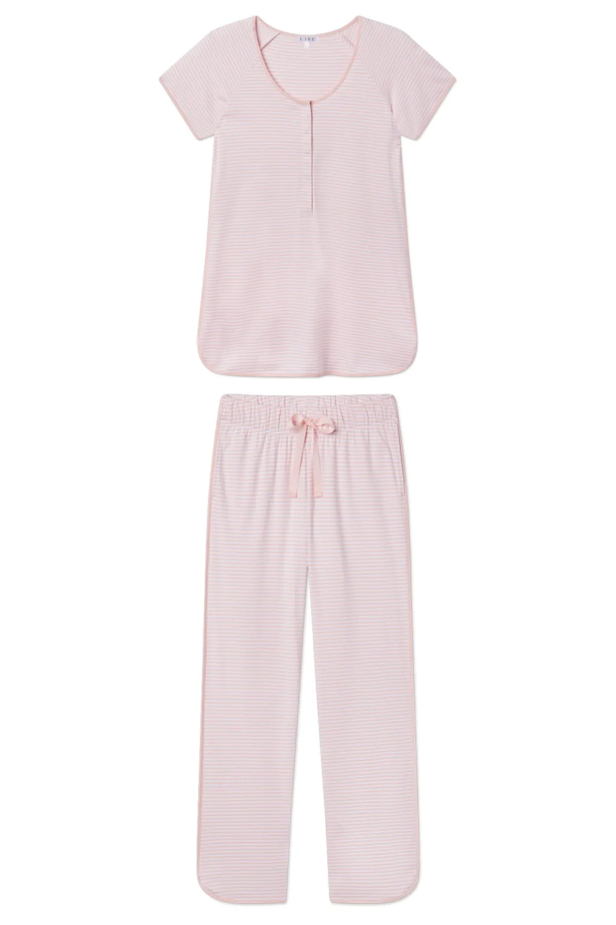 Our new, redesigned maternity styles make the waiting game more comfortable. The Maternity Pima Classic Short-Long Set in English Rose Stripe features a scoop neck top with a hidden snap placket for nursing or pumping, short raglan sleeves, and room for a bump. The pants have a supportive elastic waistband, drawstring, and on-seam pockets for the essentials (hi, pacifiers). This soft, breathable maternity pajama set has curved hems and contrast piping throughout. Made from 100% Pima cotton.