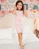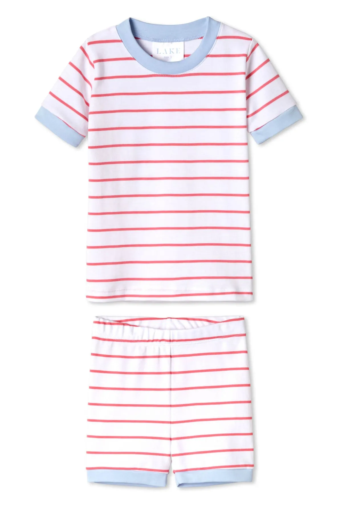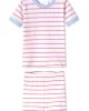 Our enhanced kids styles feature a ribbed, cotton-spandex collar and cuffs for a comfortable, easy-on fit. The Kids Shorts Set in Sorbet, a punchy pink and white stripe with pale blue trim, features a short-sleeve top and shorts with an elastic waistband. Made from 100% Pima cotton. This garment is not flame resistant. For the child’s safety, this garment should fit snugly.