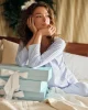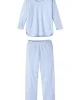 The Pima Long-Long Set in Hydrangea, our best-selling purpley-blue, features a three-quarter sleeve scoop neck top and pants with an elastic waistband. Made from 100% Pima cotton.
