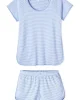 The Pima Classic Shorts Set in Hydrangea, our best-selling purpley-blue, features a scoop neck, short-sleeve top and shorts with a dolphin hem and elastic waistband. This soft, breathable pajama shorts set has contrast piping throughout. Made from 100% Pima cotton.