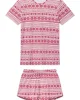 The Crew Shorts Set in Classic Red Fair Isle, a cheeky nod to Nordic prints in cheery red, features a fitted crewneck top. The shorts have an elastic waistband and straight-edge hem. Made from 100% Pima Cotton.