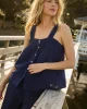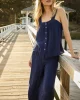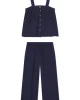 Ideal for hot sleepers in light-as-air gauze, the Hamptons Pants Set in English Navy features a button-front tank top with smocking at the back for added comfort. The pants have pockets, a drawstring, and an elastic waistband. Made from 59% cotton and 41% modal.