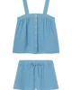 Ideal for hot sleepers in light-as-air gauze, the Hamptons Shorts Set in Serene Blue features a button-front tank top with smocking at the back for added comfort. The shorts have pockets, a drawstring, and an elastic waistband. Made from 59% cotton and 41% modal.