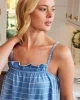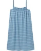 The Ruffle Nightgown in Serene Blue Boating Stripe, a thin white stripe set on soft blue,was designed with simple, adjustable spaghetti straps with a fully elasticated top and is our sweetest sleepwear yet. Made from 100% Pima cotton.