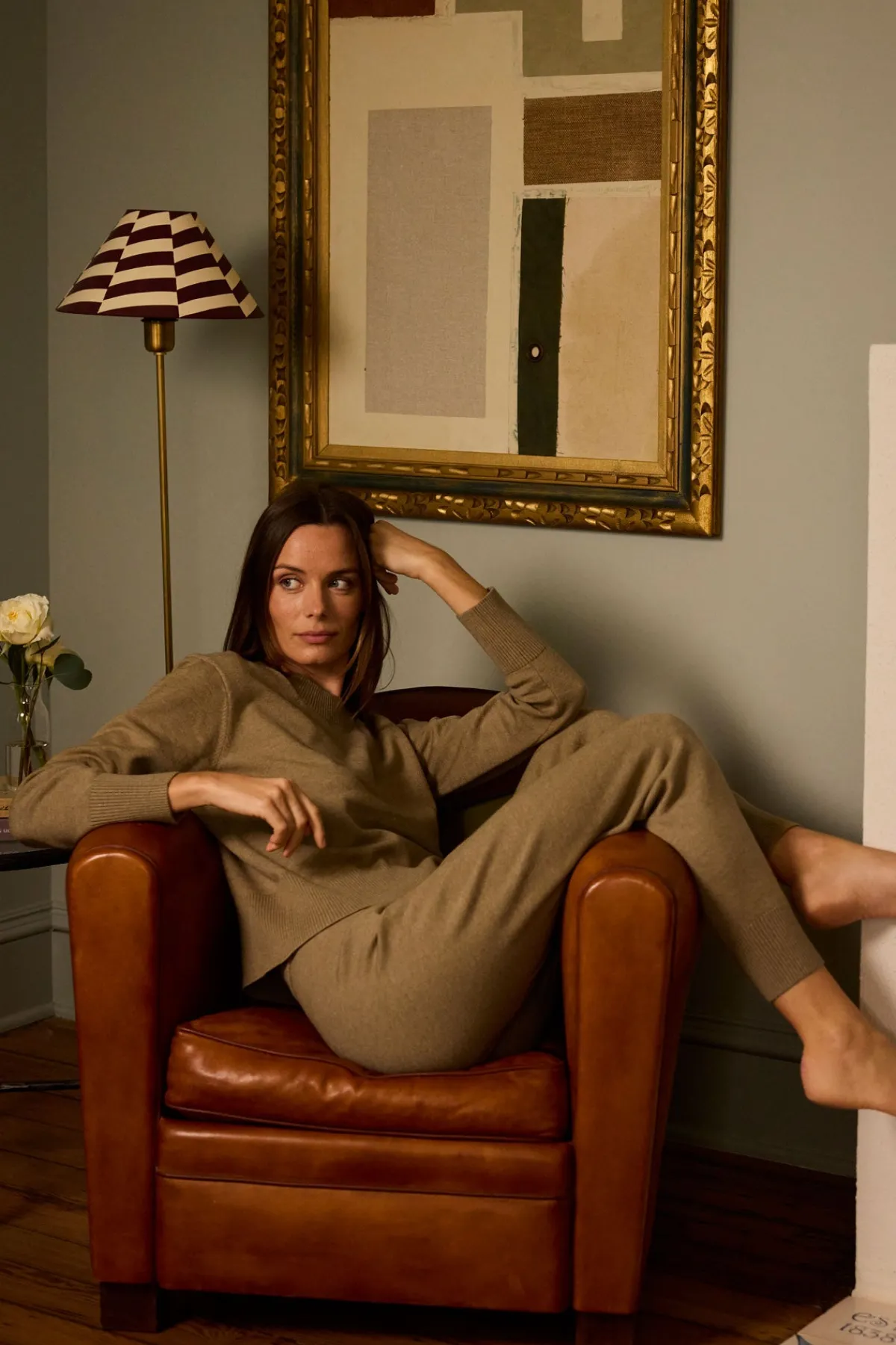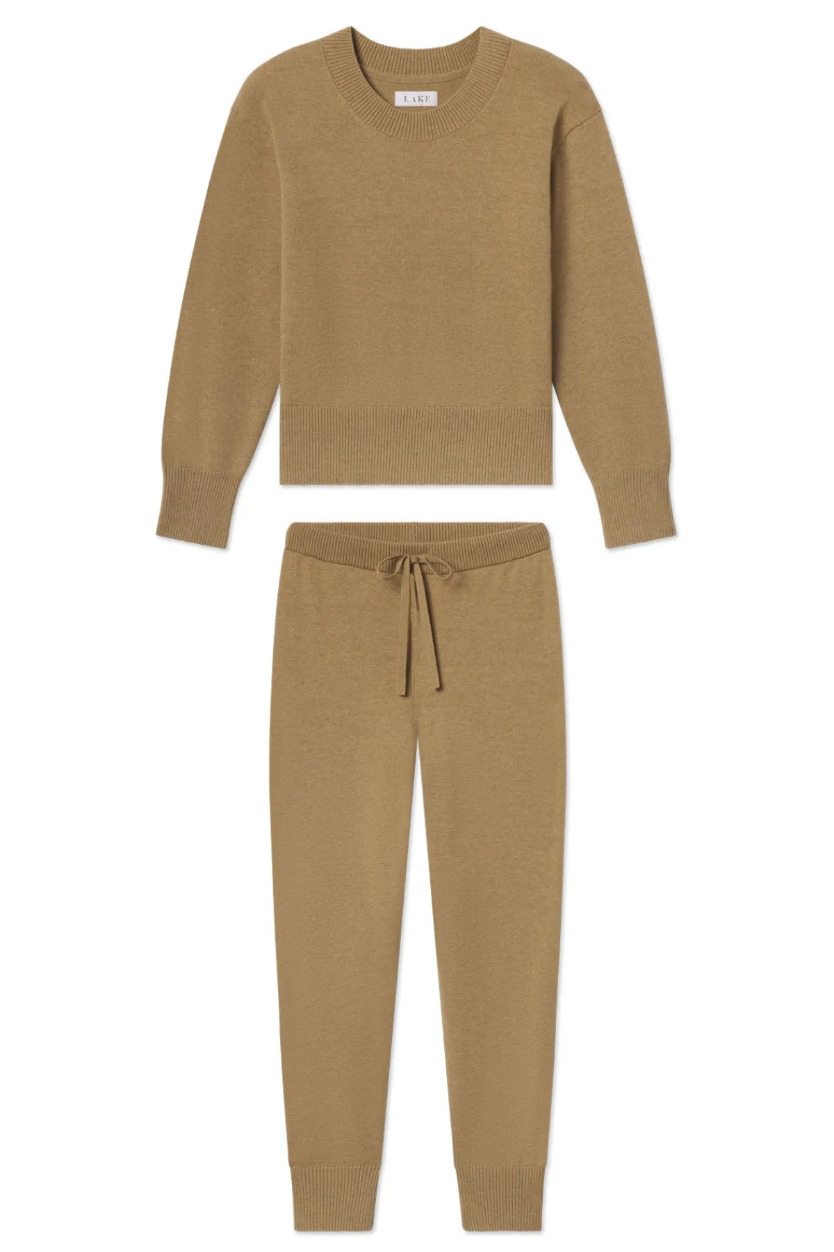 The Vesper Set in Sandstone Heather, a warm, heathered taupe, features a slouchy, slightly cropped crewneck sweater in a relaxed fit. The jogger-style pants feature a 28” inseam, ribbed waist and cuffs, and a functional drawstring. Wear this cozy set together or mix and match with your favorite fall pieces. Made from 50% polyester, 36% acrylic, 14% nylon.