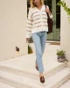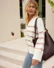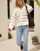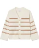 Classic and coastal style meet in the Nora Cardigan in Oak Varsity Stripe, a caramel double stripe set on cream. This elevated take on the varsity sweater adds a finishing touch to layer over a tee and jeans, bring balance to a dress, or pop over pajamas. Size down if you prefer a closer fit. Made from 100% cotton with faux horn buttons.